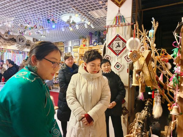 每到一處,王宏華一行同歸僑僑眷親切交談、深入交流,詳細(xì)詢問他們的生活狀況和經(jīng)營現(xiàn)狀,鼓勵他們加強(qiáng)與海外僑胞的聯(lián)系,傳播優(yōu)秀中華文化,講好中國故事、鄂溫克故事。在特榮民族文化傳媒公司,王宏華參觀了厄魯特蒙古族民族服飾、首飾和手工羊毛氈作品等,并在手工藝品傳承人的帶領(lǐng)下體驗制作羊毛氈畫。在太陽姑娘工作室,王宏華鼓勵負(fù)責(zé)人艾吉瑪要充分發(fā)揮新僑青年活力,做大做強(qiáng)文化產(chǎn)業(yè),為家鄉(xiāng)經(jīng)濟(jì)建設(shè)做出突出貢獻(xiàn)。要求隨行僑務(wù)工作者在日常工作中拓展為僑服務(wù)內(nèi)容,創(chuàng)新為僑服務(wù)形式,努力為僑資企業(yè)、新僑創(chuàng)業(yè)發(fā)展提供良好社會環(huán)境,引導(dǎo)激勵僑界人士干事創(chuàng)業(yè)。